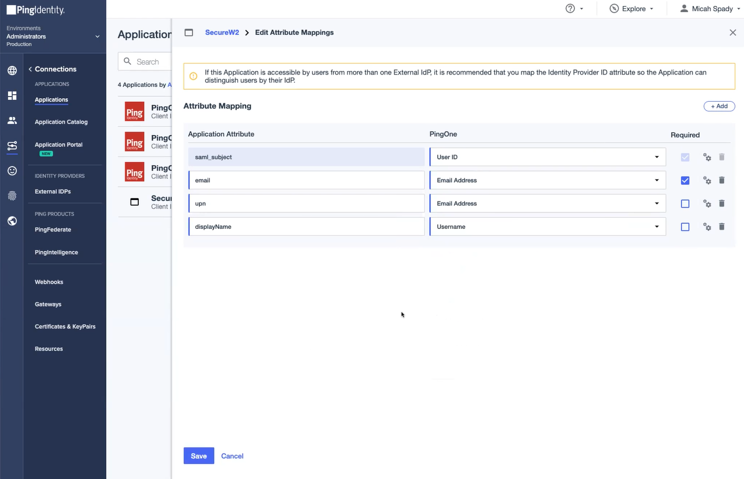 Configuring Attribute Mapping In the PingId