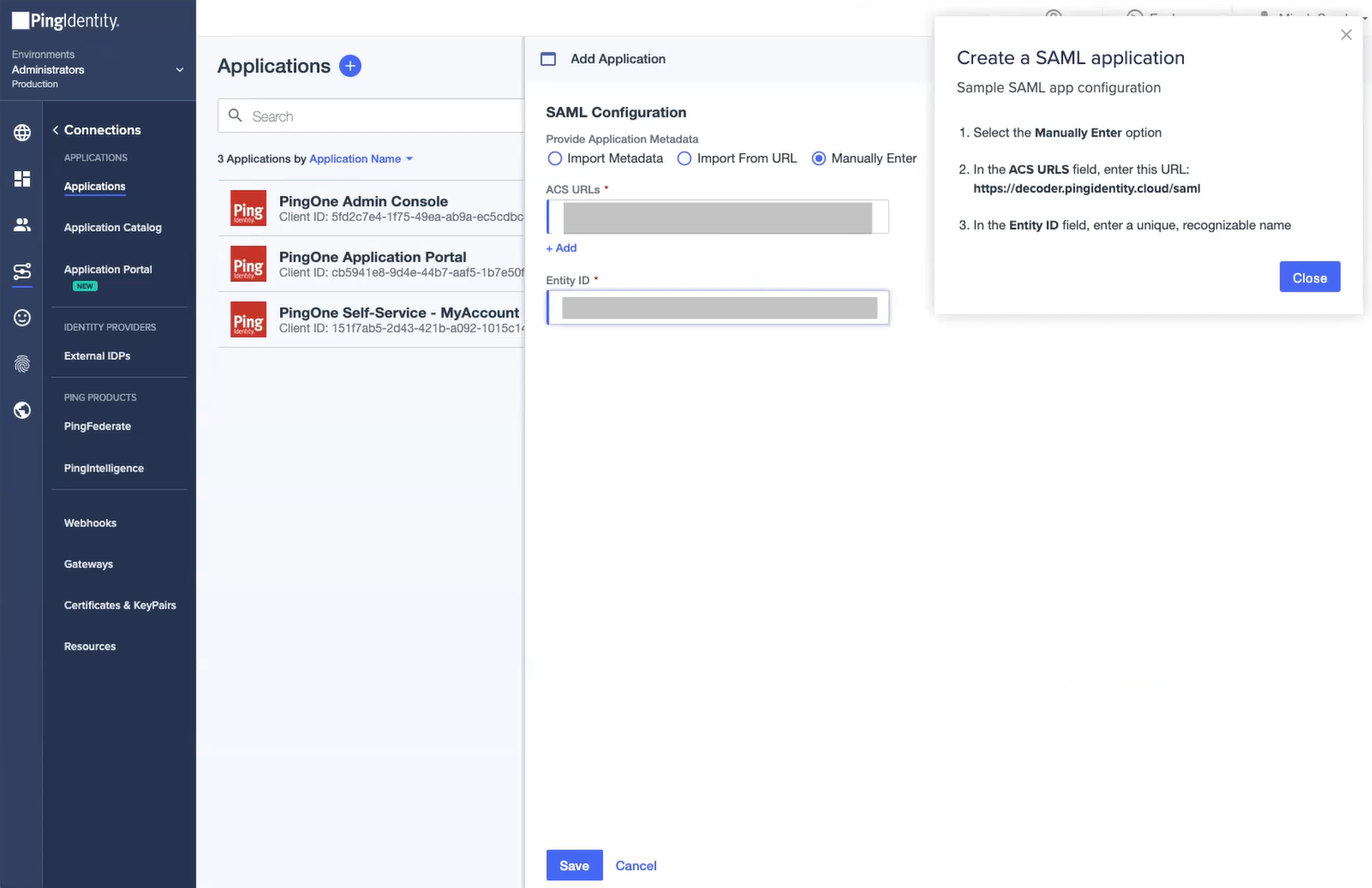 Steps to create a SAML App for the PingIdentity Portal.