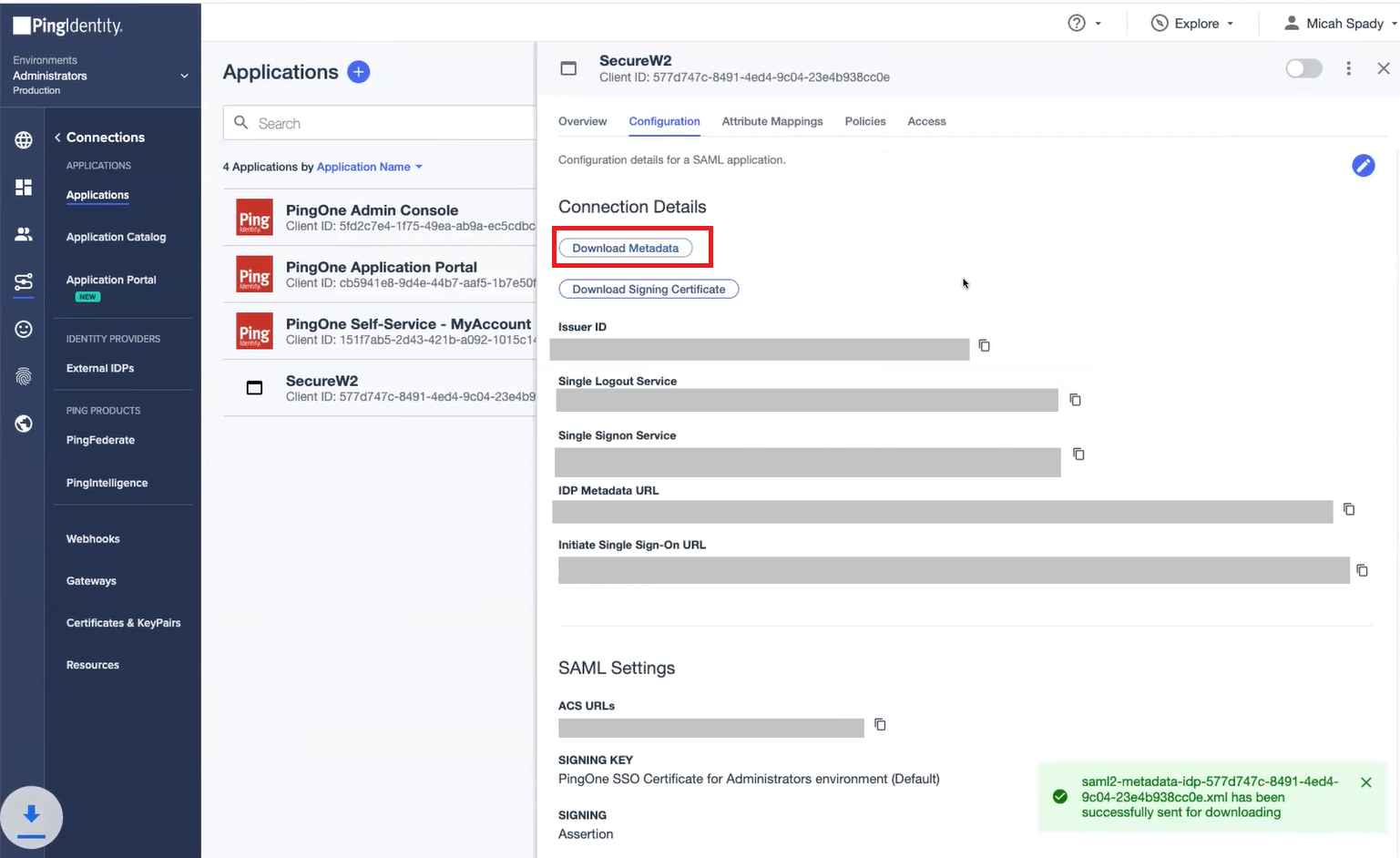 Configuring a SAML App in the PingIdentity Portal