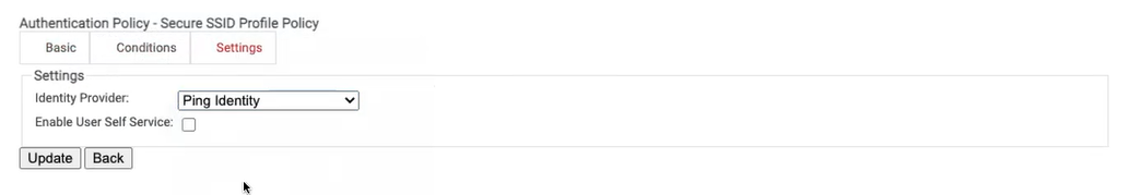 - Click the Settings tab. From the Identity Provider drop-down list, select the Ping IDP created earlier.