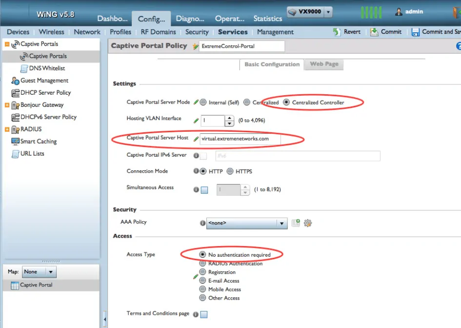 - In Captive Portal Server Mode, select Centralized Controller.