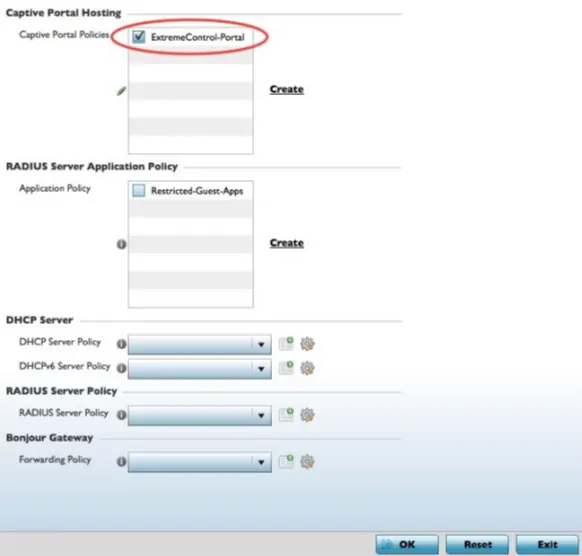 - Select the Services tab in the profile, then check the box next to the new Captive Portal Policy.